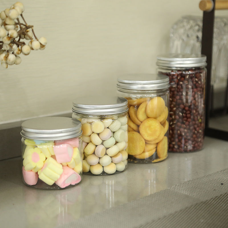 ظروف شیشه ای پلاستیکی دهان گشاد 280 میلی لیتری درپوش آلومینیومی با درب 32 گرم